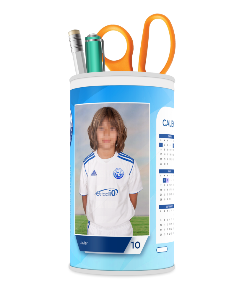 El calendario personalizado de mesa de Estadio10 es un calendario que incluye foto del jugador y un pequeño calendario adjunto.