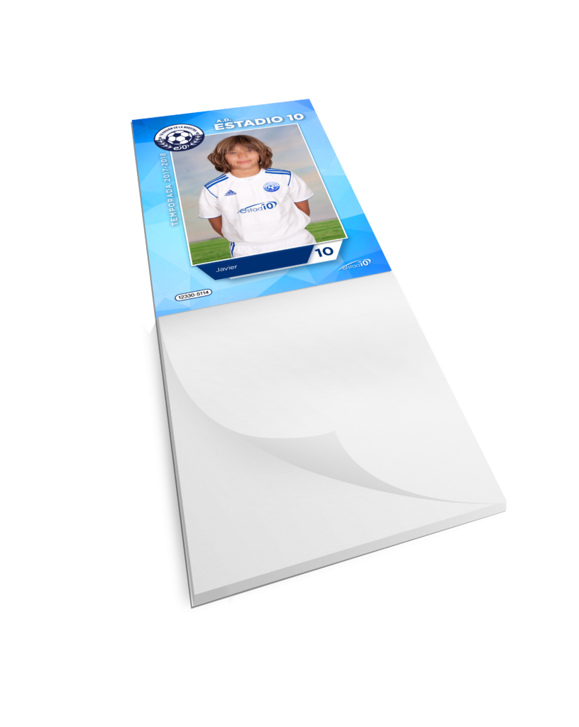 Las libretas personalizadas de Estadio10 incorporan una foto del jugador a un práctico bloc de notas con un tamaño perfecto